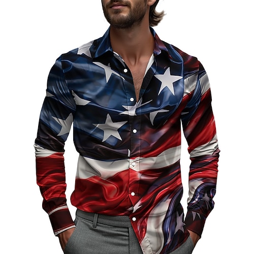 Per uomo Bandiera Americana Camicia Camicia casual Camicia da Spiaggia Manica Lunga Casual Confortevole Vacanza Streetwear Camicia hawaiana Primavera Autunno Bavero Stampato Blu reale Blu Blu