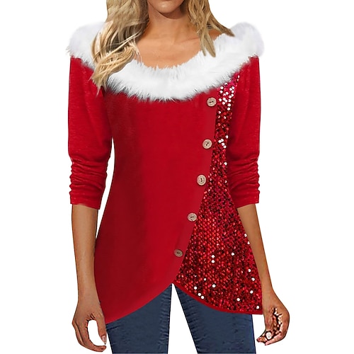 Blusa da donna a tinta unita elegante casual maniche lunghe scollo a V top regolari quotidiani paillettes patchwork nera rossa blu reale verde primavera autunno inverno