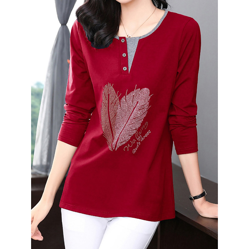 Women's Blouse Feather Stylish Casual Long Sleeve Crew Neck Regular Tops Daily Patchwork Sage Green Black Pink Red Royal Blue Spring Fall