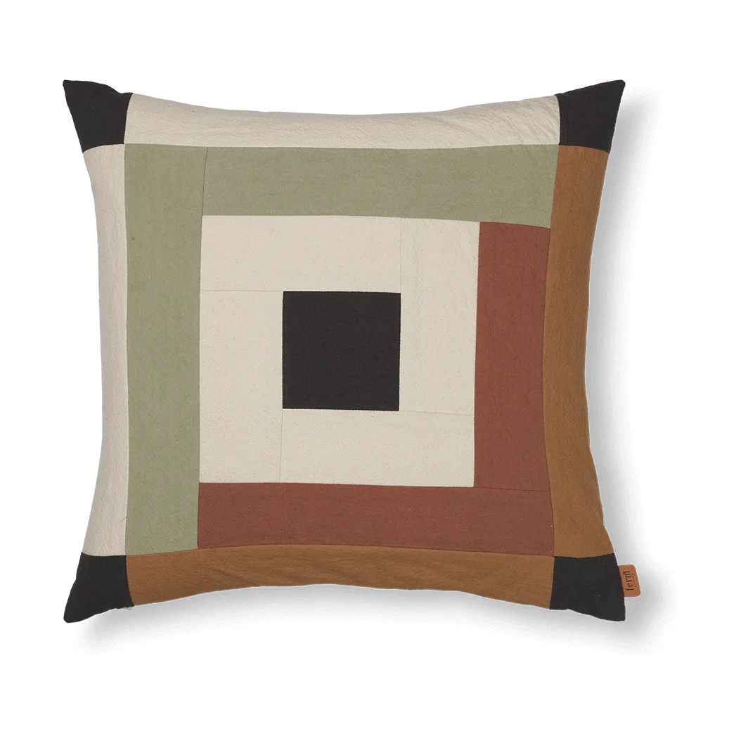 Ferm Living Border patchwork pudebetræk 50x50 cm Dark sage-red brown