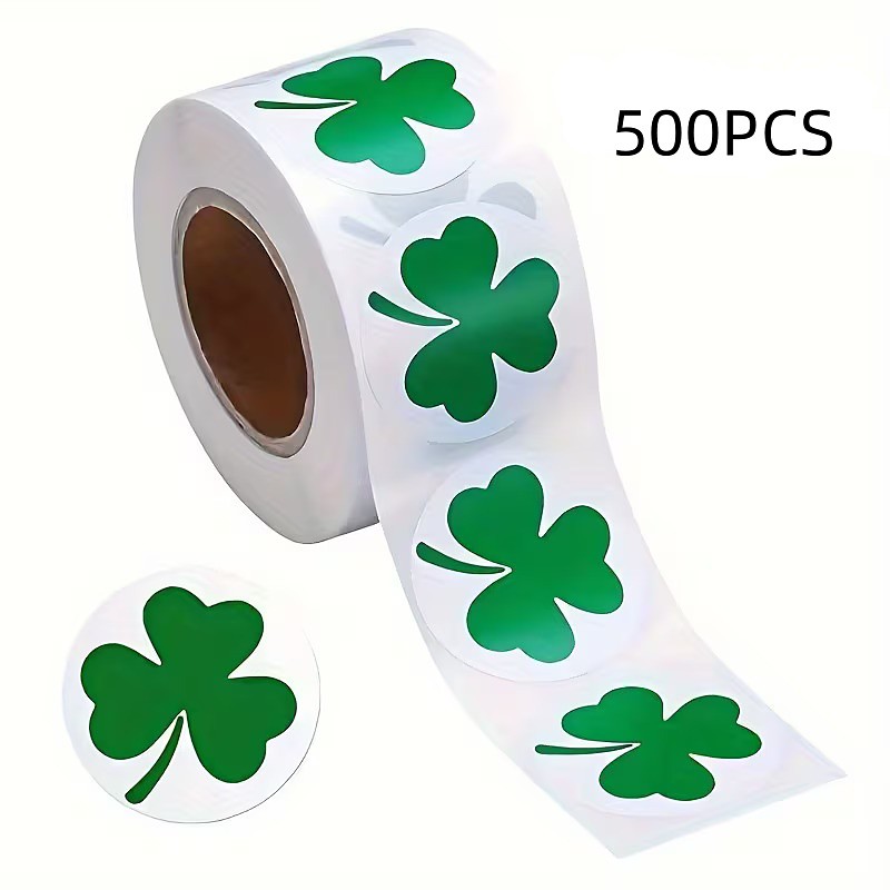 500-sheet Roll Of Green Shamrock Stickers - Semi-gloss Self-adhesive Glitter Plant Stickers Reusable Suitable For St Patrick's Day And Festive Decorations