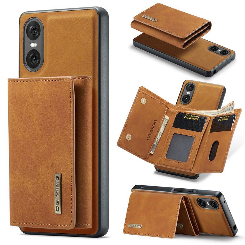 DG.MING Sony Xperia 10 VI Kickstand Konstläder Plånboksfodral - Brun