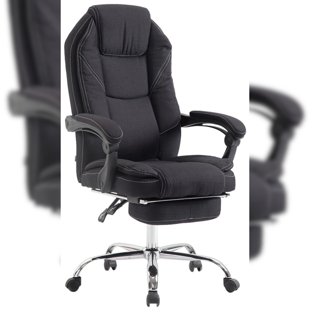 DELUKE® Bürostuhl MEDHA Stoff - 114x67x64, Schwarz | Stoff | Metall in Chromoptik Gestell | ergonomische Bürostühle Homeoffice Stuhl mit Rollen