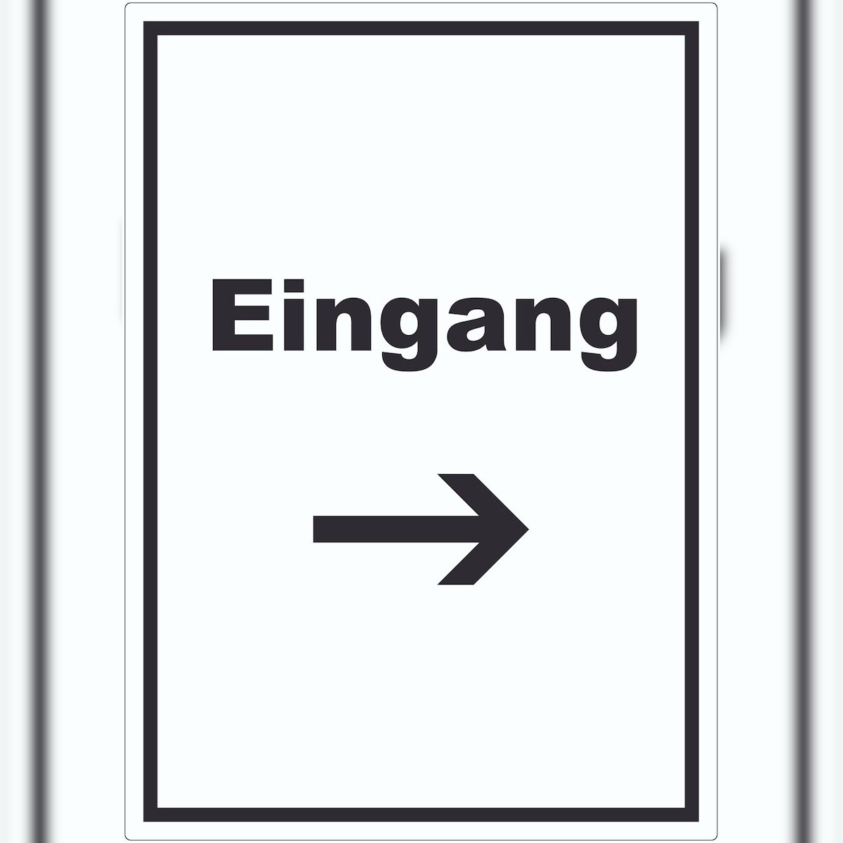 HB-Druck Eingang Aufkleber mit Text und Richtungspfeil rechts Zugang Eintritt hochkant A9 (37x52mm)