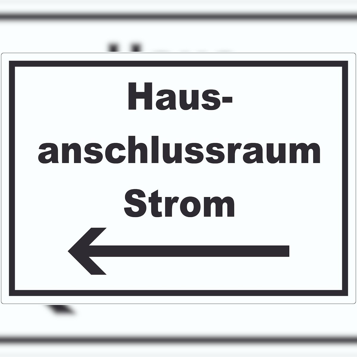HB-Druck Hausanschlussraum Aufkleber mit Text und Richtungspfeil links HAR hochkant A2 (420x594mm)