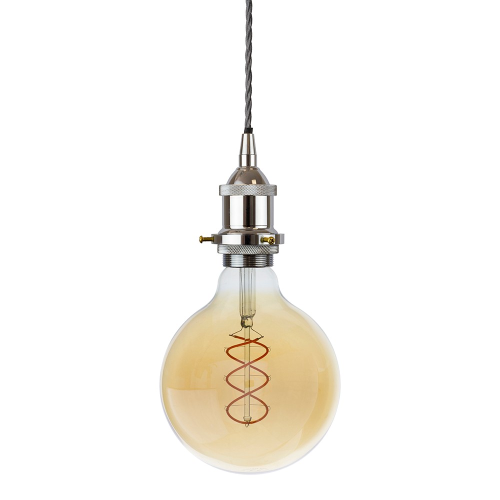Soho Lighting Nickel Decorative Bulb Holder with Grey Twisted Cable