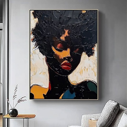dipinto a olio fatto a mano su tela, decorazione da parete, semplice figura astratta, ritratto di ragazza africana per arredamento d'interni, dipinto appeso su telaio teso/dipinto arrotolato senza