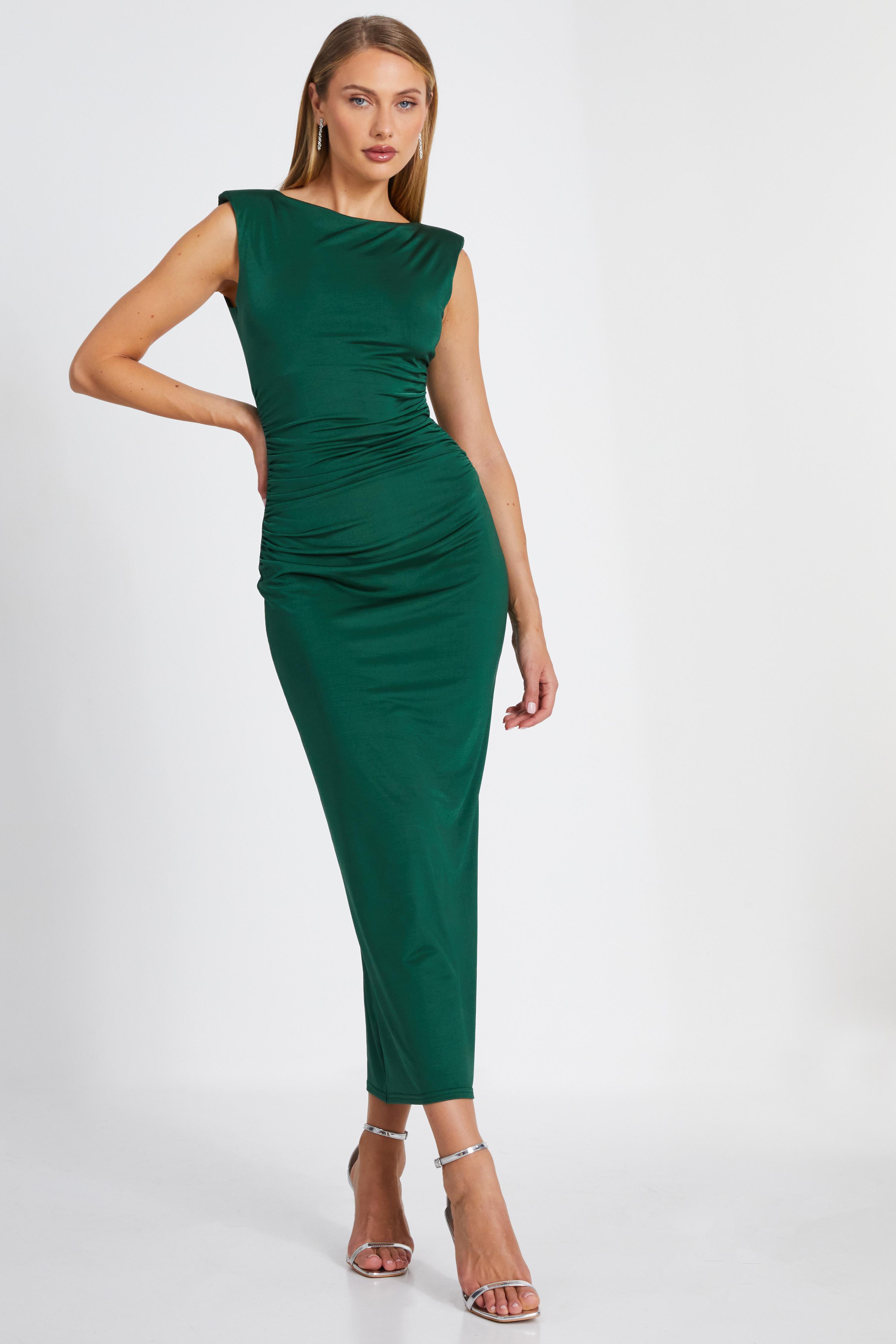 Quiz Womens Bottle Green Shoulder Pad Midaxi Dress - Size 16 UK | Quiz Sale | Discount Designer Brands