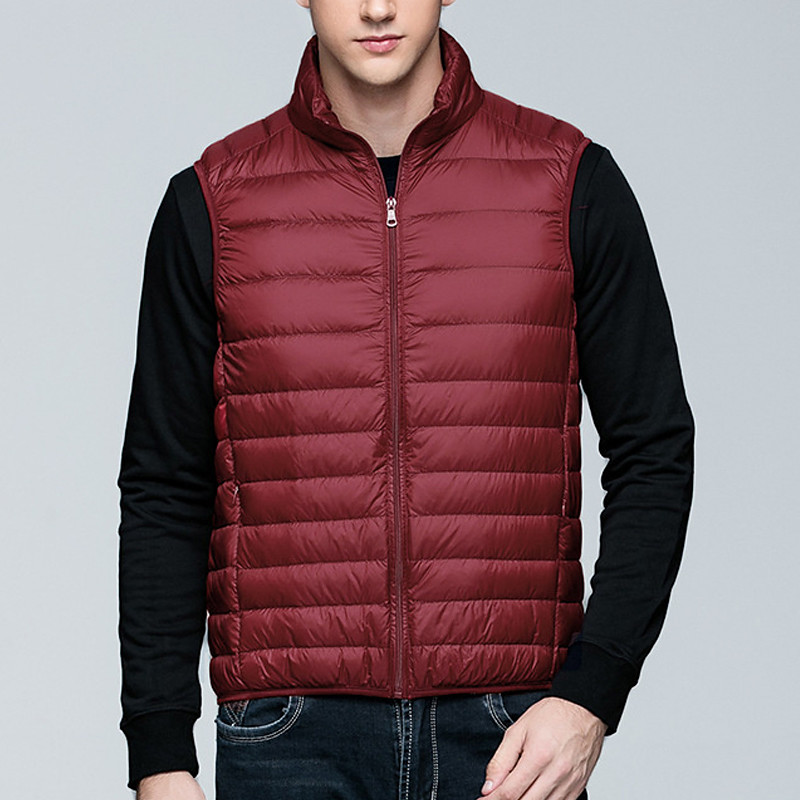 Men's Down Vest Puffer Vest Vest Gilet Vacation Daily Date Fashion Casual Fall Winter Pocket Polyester Duckdown Warm Comfortable Solid Color Zipper Stand Collar Regular Fit Black Wine Navy Blue