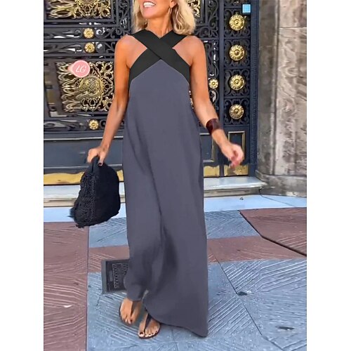 Per donna Nero Grigio Estate Primavera Abito maxi Abiti in cotone e lino Vestito Casual Abito estivo in cotone Elegante Essenziale Moderno All'aperto Vacanza Ferie Vestibilità comoda Colore Puro