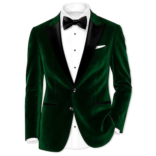 Per uomo Blazer di velluto Colletto ad incastro Natale Festa Brillanti Tinta unita Blazer di velluto Blu Nero Rosso Vestibilità su misura Monopetto Un Bottone
