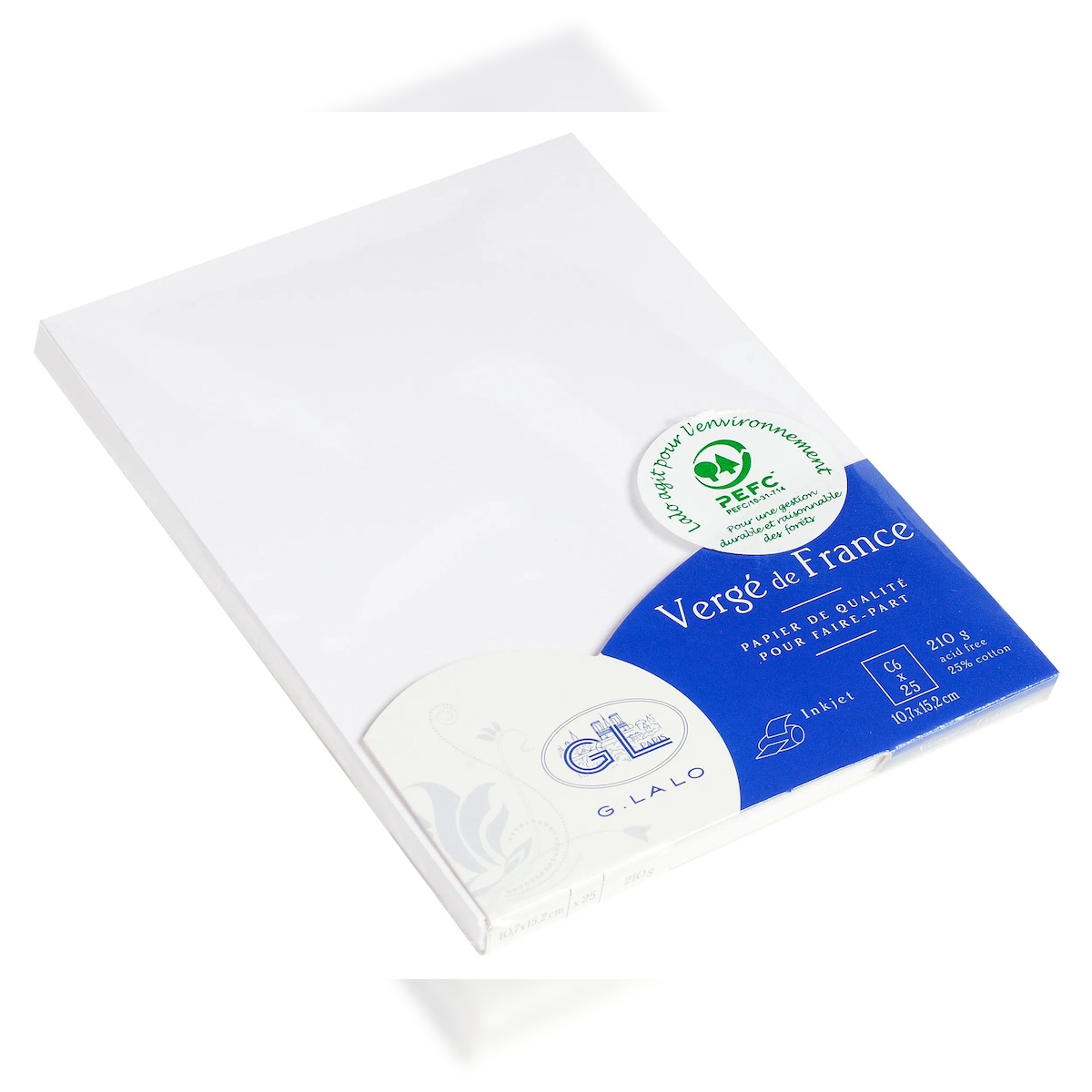 G.Lalo 4x Lalo, Packung mit 25 Karten einfach Vergé, C6 107x152mm, 210g, Vergé de France - Extra weiß 16850L