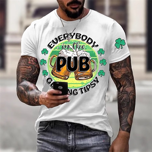 maglietta da uomo per il giorno di San Patrizio stampa 3D giorno di San Patrizio girocollo festa casual stampa 3D top a maniche corte stile etnico leggero casual comodo a b