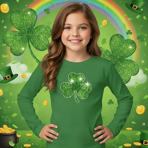 Giorno di San Patrizio Ragazze 3D Grafico Giorno di San Patrizio Maglietta Manica Lunga Stampa 3D Primavera Autunno Sport Moda Streetwear Bambini 4-12 Anni Girocollo Casuale Quotidiano All'aperto