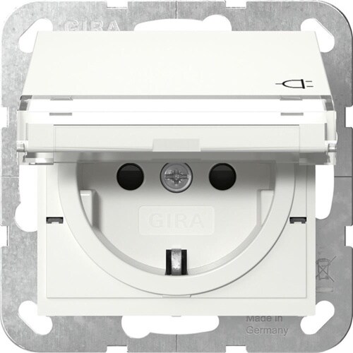 Gira System 55 Steckdose, 1f, reinweiß, glänzend, Unterputz, mit erhöhtem Berührungsschutz, Steckdose CEE 7/3 (Typ F), mit Klappdeckel, IP20, Textfeld/