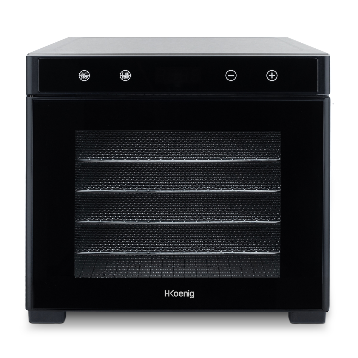 H.Koenig DSY900 Dörrgerät, Obst, Gemüse, Kräuter, 6 herausnehmbare Trocknerplatten, variable Thermostat von 35 ° bis 70 °C, Touchscreen, 650 W