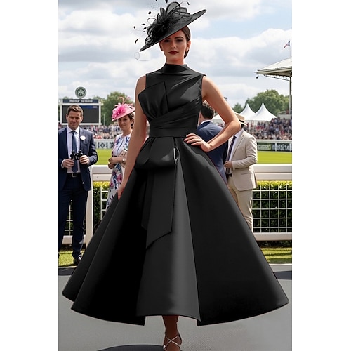 Abito da ballo Lunghezza alla caviglia Abiti da Ballo Abito da Sera Da principessa Abito formale Elegante Anni 1950 Monocolore Senza Maniche Collo Alto Balli di fine anno Ospite di nozze Raso con