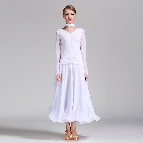 Abito da ballo da sala per donna, costumi da danza moderna, abito da competizione a maniche lunghe per il valzer