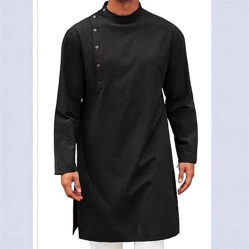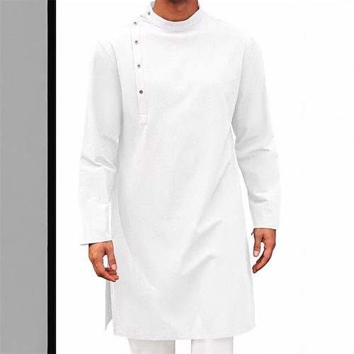 Per uomo Abbigliamento da Casa Camicia da Notte Semplice Elegante Comfort Casa Quotidiano Cotone Traspirante Collo alla coreana Manica Lunga Primavera Autunno Nero Bianco