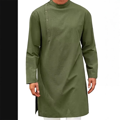 Per uomo Camicia 100% cotone lavaggio acido Maglietta Manica Lunga Collo alla coreana Primavera Autunno Autunno Inverno Semplice Vintage Streetwear Casual Con zip Base Casa Streetwear Casuale Nero