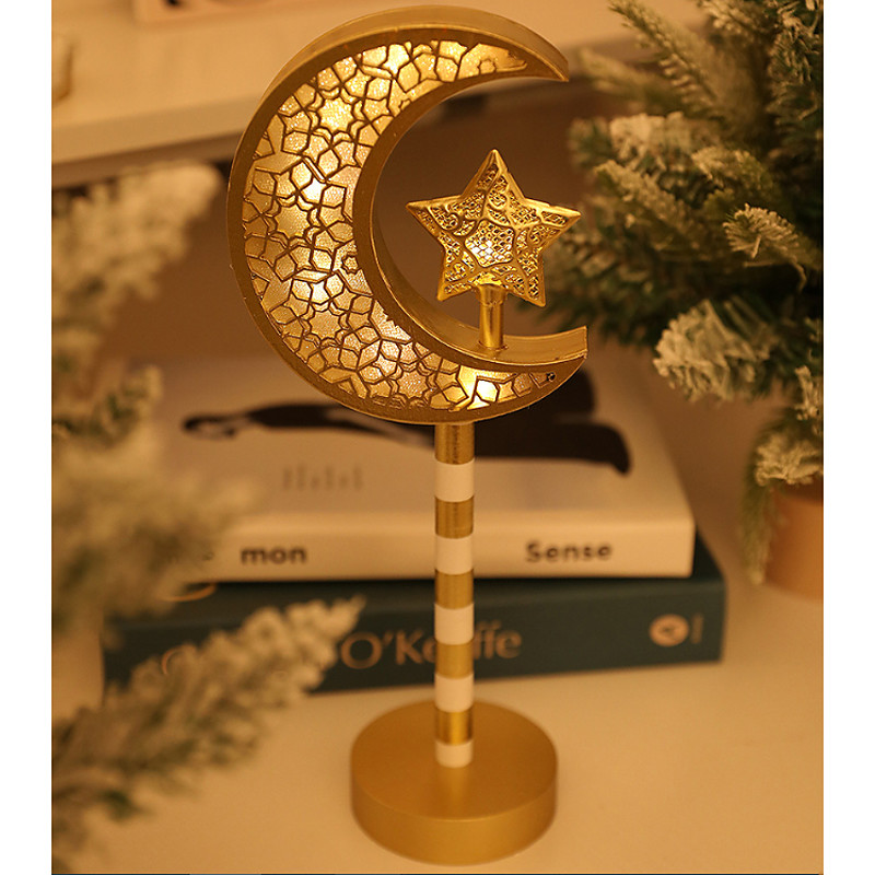Ramadan EID LED Decorative Light Signage Star Moon Castle Indoor Bedroom Festive Atmosphere Pendant Light AA Battery Box 30CM Height