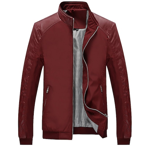 Per uomo Giacca in Ecopelle Giacca da Biker Giacca da Moto Vacanza Quotidiano Antivento Caldo Tasca Primavera Autunno Semplice Moda Classico Collo alla coreana Regolare Nero Vino Giacca