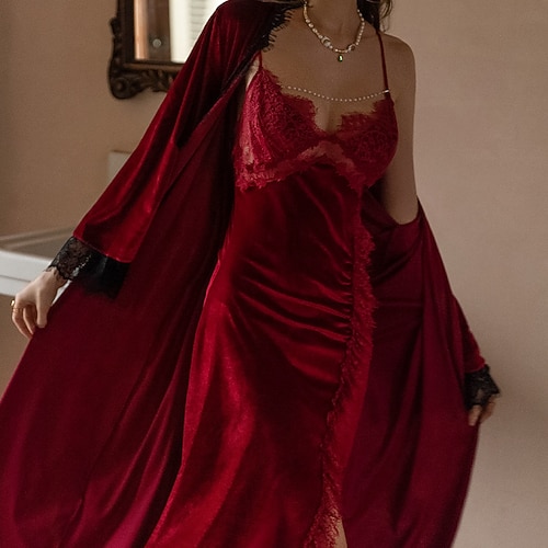 Per donna Lingerie Sexy Body Sexy Allacciato PizzoNightwearPoliestere Casuale Quotidiano Casa Tinta unita Elegante Vintage Nero Vino Autunno Inverno