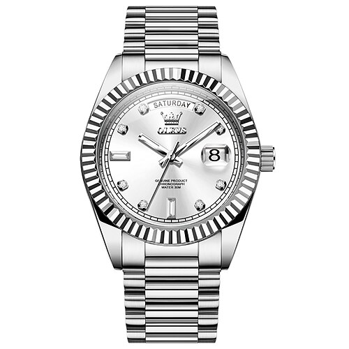 OLEVS Da uomo Orologio meccanico Lusso Moda Strass Affari Luminoso Calendario Impermeabile Cinturino in acciaio inossidabile Guarda
