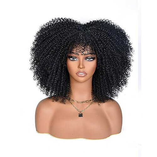 parrucca afro per donna parrucche afro anni '70 parrucche afro crespe dall'aspetto naturale con frangia parrucca afro corta e riccia parrucca afro morbida e gonfia parrucca afro con capelli sintetici