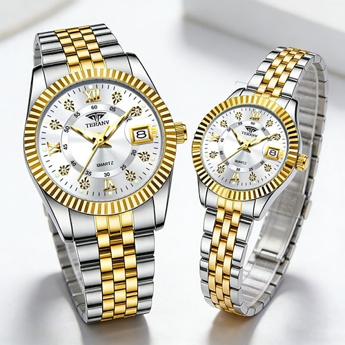 Orologio da coppia 2 pezzi, regali di San Valentino per uomo e donna, orologio di lusso affascinante, decorazione in strass, funzione calendario, display con luce notturna, tempo libero alla moda, i