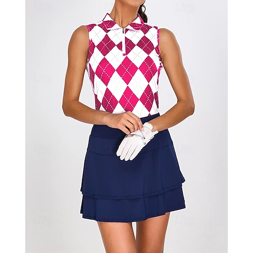 Per donna Quadri Maglietta sportiva Polo da golf Maglia da tennis Senza Maniche Cerniera Alta elasticità Traspirante Tennis Golf Pickleball Collo ripiegato Collo con zip Maglietta Top Nero Rosa Blu
