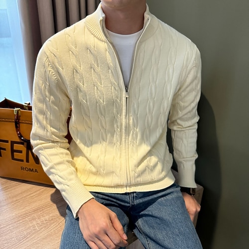 Per uomo Maglione a trecce Felpa Cardigan Maglione con Zip Treccia Maglia Top Regolari Con zip Lavorato a maglia Semplice Collo alla coreana Vacanza Moda Casuale Abbigliamento quotidiano Abbigliamento