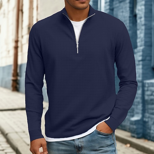 Per uomo Maglietta Maglietta a Maglia Waffle Maglietta con Zip a Quarti Manica Lunga Collo alla coreana Zip a un quarto Primavera Autunno Primavera Autunno Tinta unica Maglieria Vintage Quotidiano