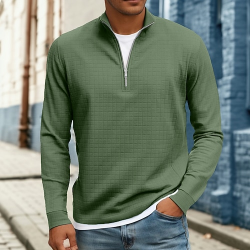 Per uomo Geometrico Plaid Nido d'ape Felpa Moda Quotidiano Classico Casual Collo alla coreana Zip a un quarto All'aperto Casa Ufficio Lavoro Blu Marrone Verde Grigio Con zip Autunno Inverno