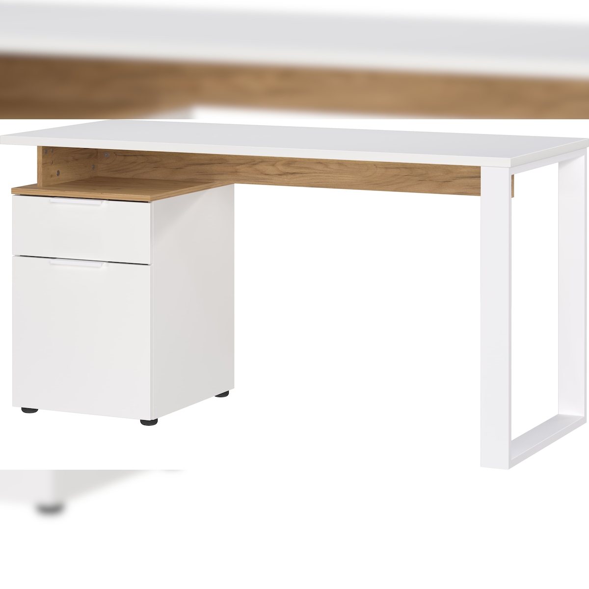 Schreibtisch mit Container in Weiß-Beige, 140x61x74, Metallkufen, Stoßfest, `Sage`-Serie | Kadima Design