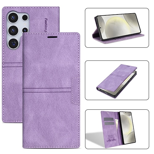 Handy Hülle Handyhüllen Für Samsung Galaxy S26 Ultra Plus S25 S24 S23 S24 FE S22 S21 Ultra Plus S20 A55 5G A35 5G Flip-Cover Mit Ständer Magnetisch Unterstützt kabelloses Laden Retro TPU PU-Leder