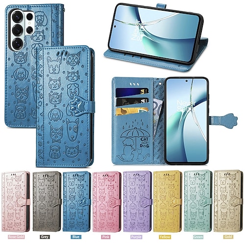 Handy Hülle Handyhüllen Für Samsung Galaxy S26 Plus S26 Ultra S25 Edge S24 S23 S24 FE S22 S21 Ultra Plus A16 A55 5G Brieftaschenhülle Flip-Cover Mit Handgelenkschlaufe Stoßfest Katze Hund TPU PU-Leder