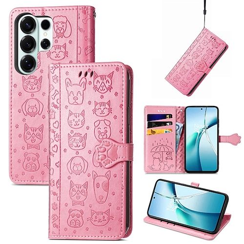 Handy Hülle Handyhüllen Für Samsung Galaxy S26 S26 Plus S26 Ultra Brieftaschenhülle Flip-Cover Mit Handgelenkschlaufe Ständer Katze Hund TPU PU-Leder