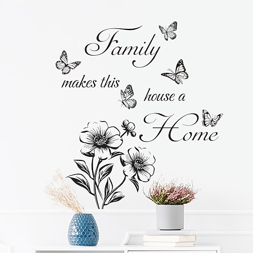 Adesivo da parete con proverbi floreali ad acquerello, design per la famiglia, decalcomania da parete rimovibile con citazione ispiratrice e opere d'arte floreali per camera da letto, soggiorno,