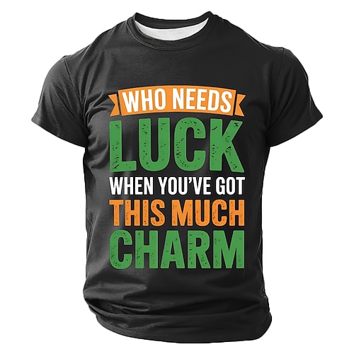Giorno di San Patrizio, chi ha bisogno di fortuna quando hai così tanto fascino? Maglietta da uomo divertente, maglietta grafica verde, slogan portafortuna, abbigliamento di alta qualità,