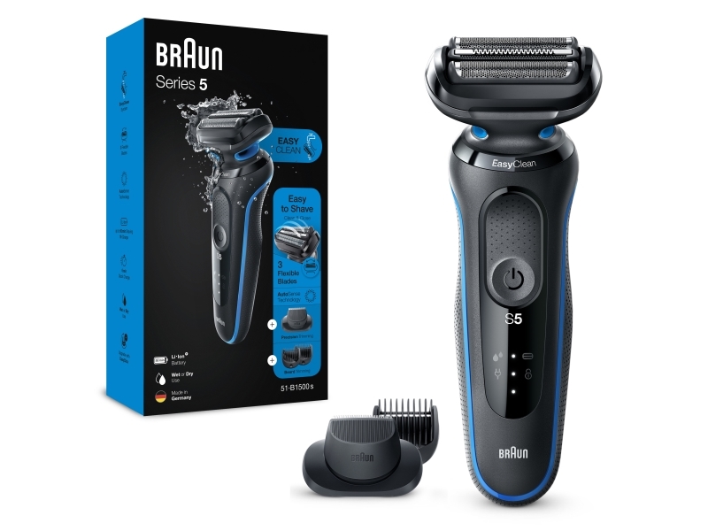 Braun Series 5 51-B1500s, Foil shaver, Black, Blue, AutoSense, Buttons, LED, Battery
