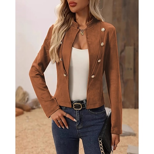 Per donna Giacca in Ecopelle Giacca da Biker Caldo Confortevole Patchwork Bottoni Vintage Casual Semplice Vacanza Streetwear Casuale Abbigliamento quotidiano Corto Collo alla coreana Vestibilit