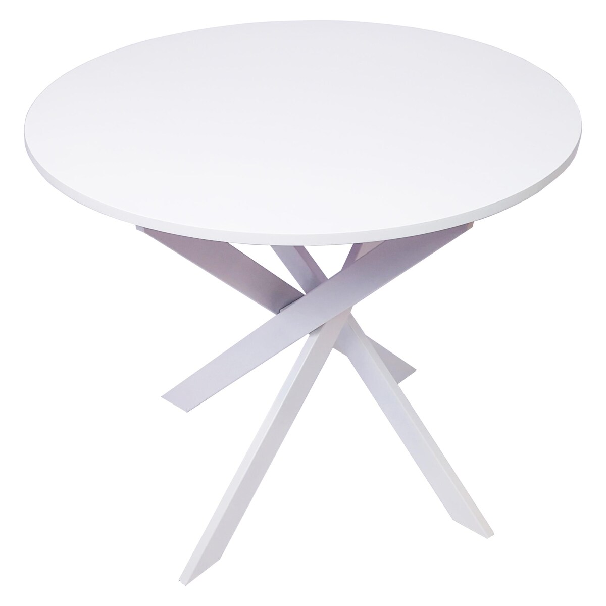 SKRAUT HOME Fester runder Esstisch, Modell ZEN, 90x90x77cm, Platz für 4 Personen, Farbe weiß matt, Beine aus mattweiß lackiertem Metall _ ZENIIBLBL