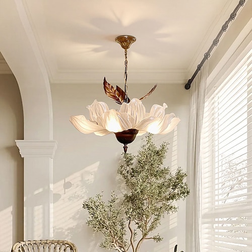 lampadario tradizionale francese a cupola con foglie in ferro e vetro a 6 luci per soggiorno