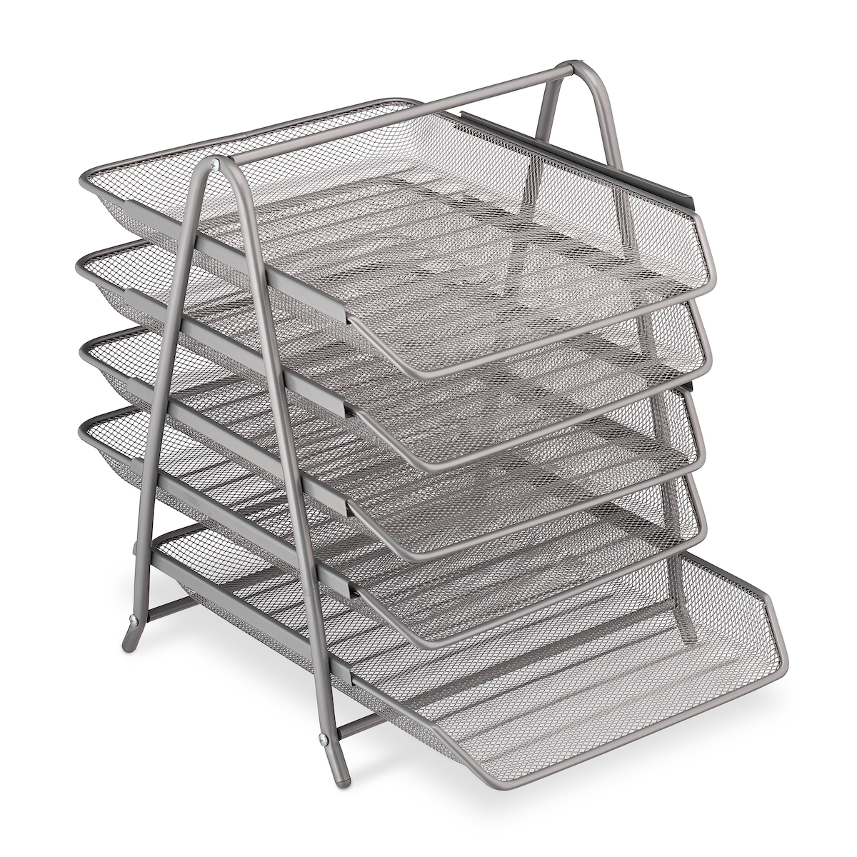 Relaxdays Dokumentenablage, Papierablage für A4 Formate, 4 Fächer, 37,5 x 30 x 35 cm, Mesh-Design, Büro-Ablage, silber