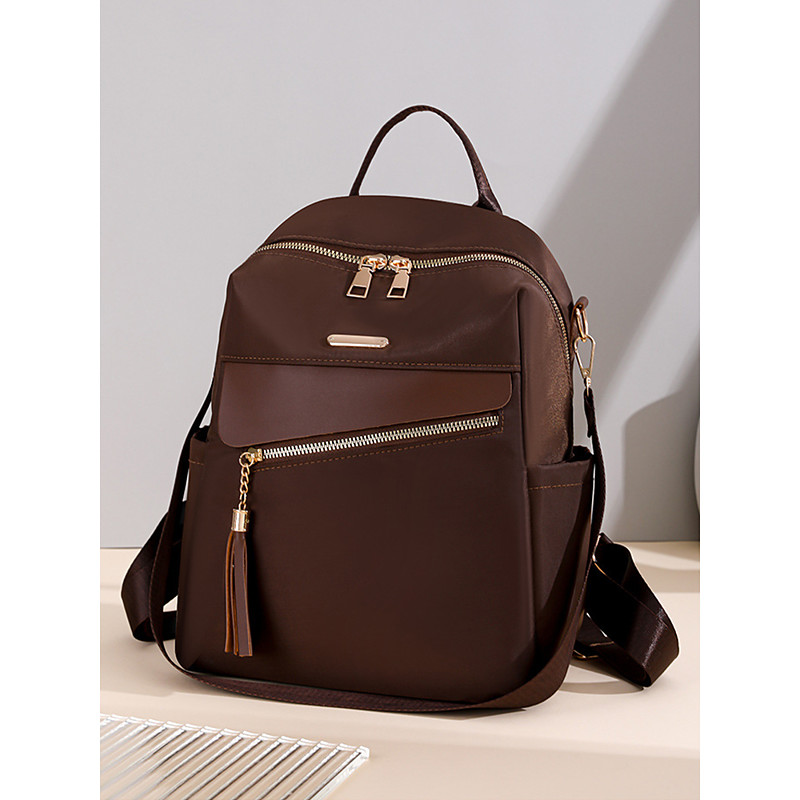 Women's large capacity water-resistant backpack - can be carried on one shoulder, stylish tassel details, zipper closure, suitable for work, school and daily use