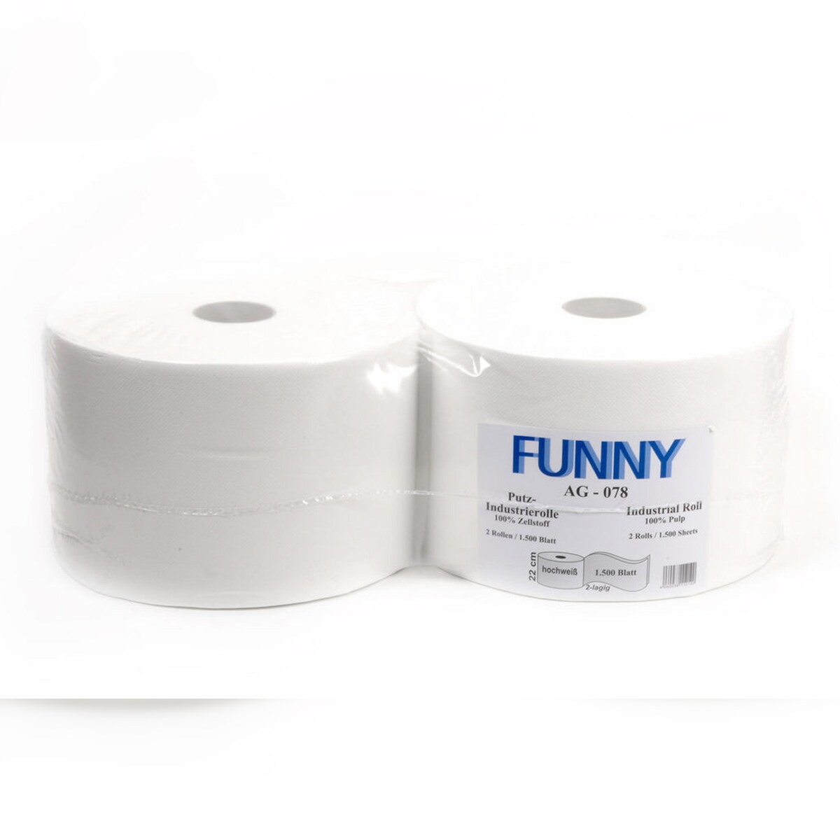 Plock GmbH Industriepapierrolle Funny - 2-lagig - hochweiß - 2 Rollen - 22 x 32,6 cm