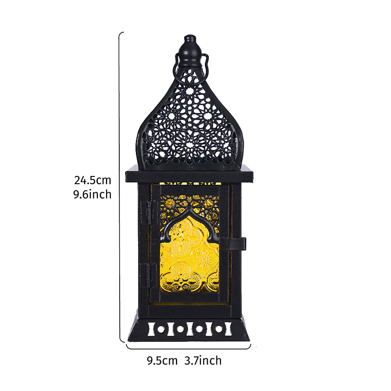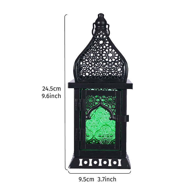 Ramadan Vintage Iron and Colored Glass Star Lantern, Windproof Hanging Candle Holder, Festive Home, Bar Restaurant Decor, Gift for Eid