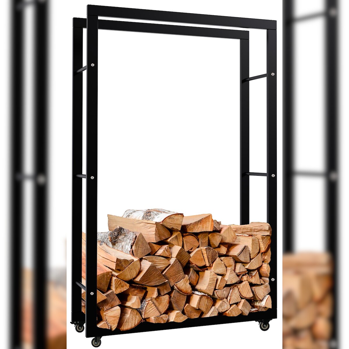 CLP Kaminholzständer Keri mit Rollen schwarz/25x80x125 cm