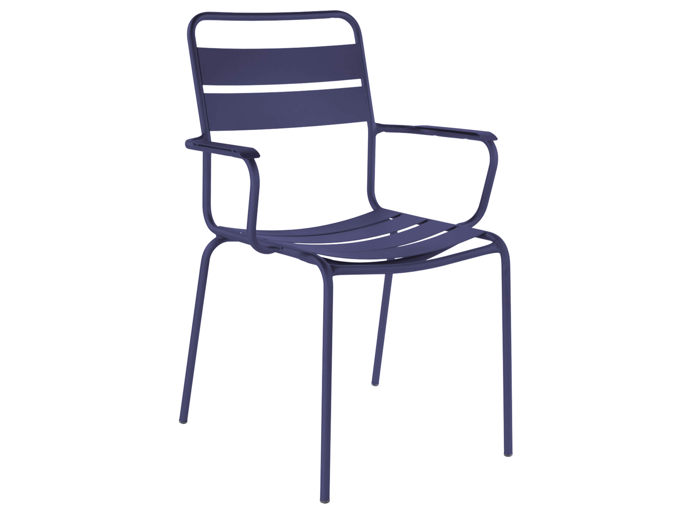 Schaffner Metall-Lattenstuhl Glarus mit Armlehne Blau | Schubiger Möbel